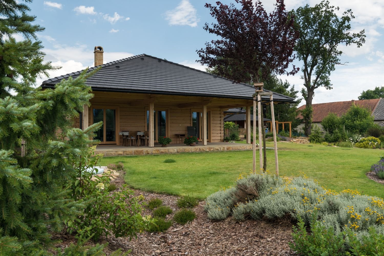 Dispozičně je bungalov navržen tak, aby pohodlně splňoval rodinné bydlení 4. členné rodiny. Srub je svými rozměry vhodný spíše na větší stavební parcely od 1.200 m2. Srubový dům je vhodný do malebné krajiny s nízkou zástavbou.