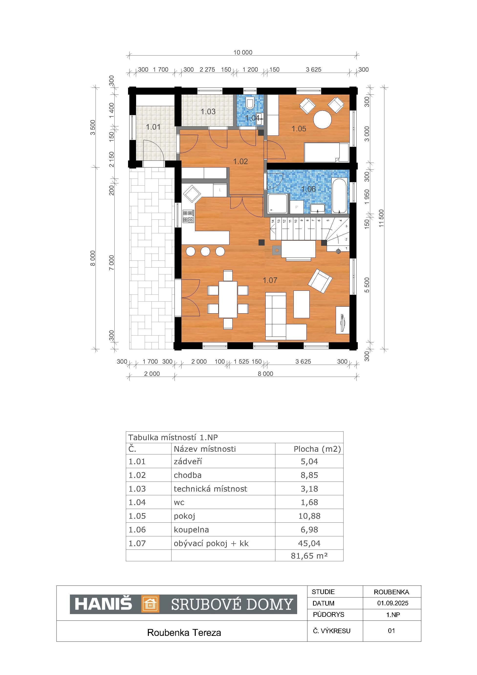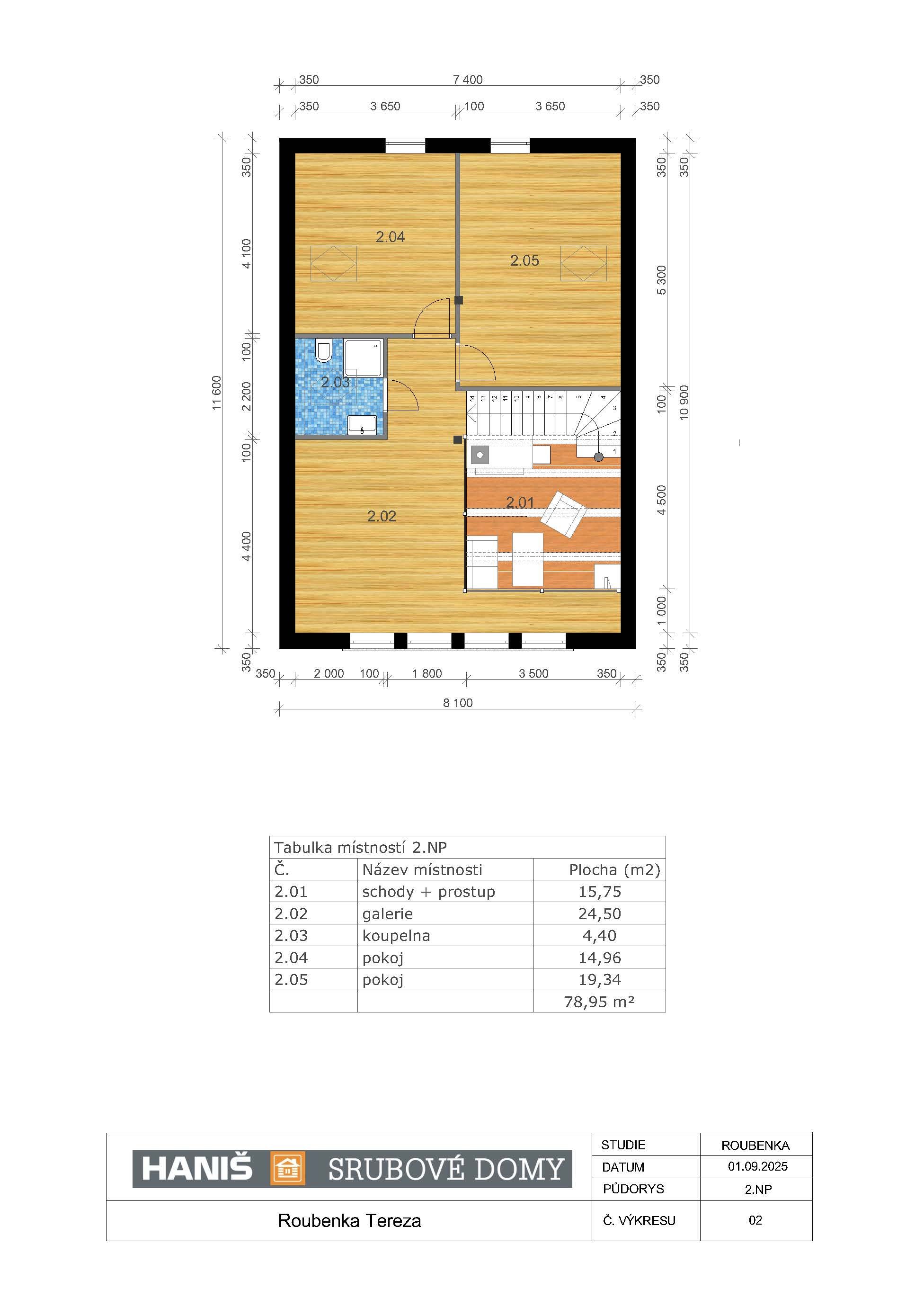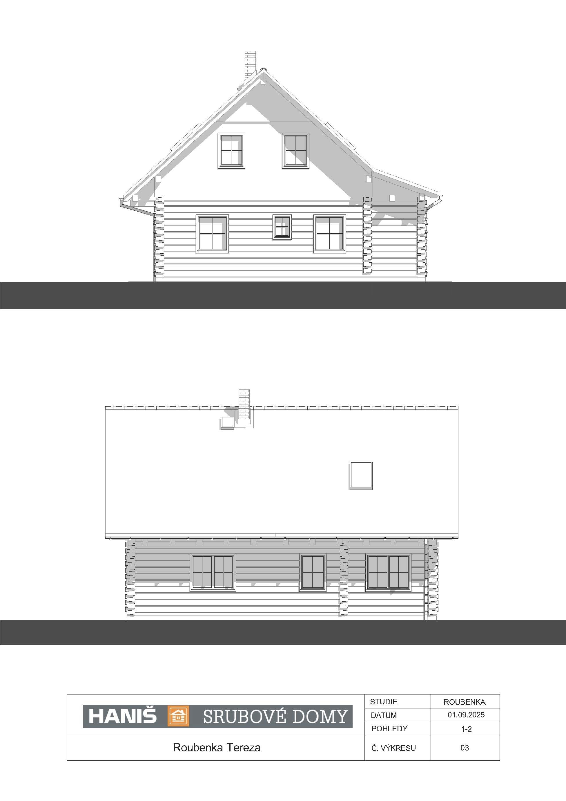 Roubenku Tereza vyrábíme z hraněného masivu o průřezu 26/24 cm ( možnost až 30/24cm ) - splňuje technické parametry pro rodinné bydlení.