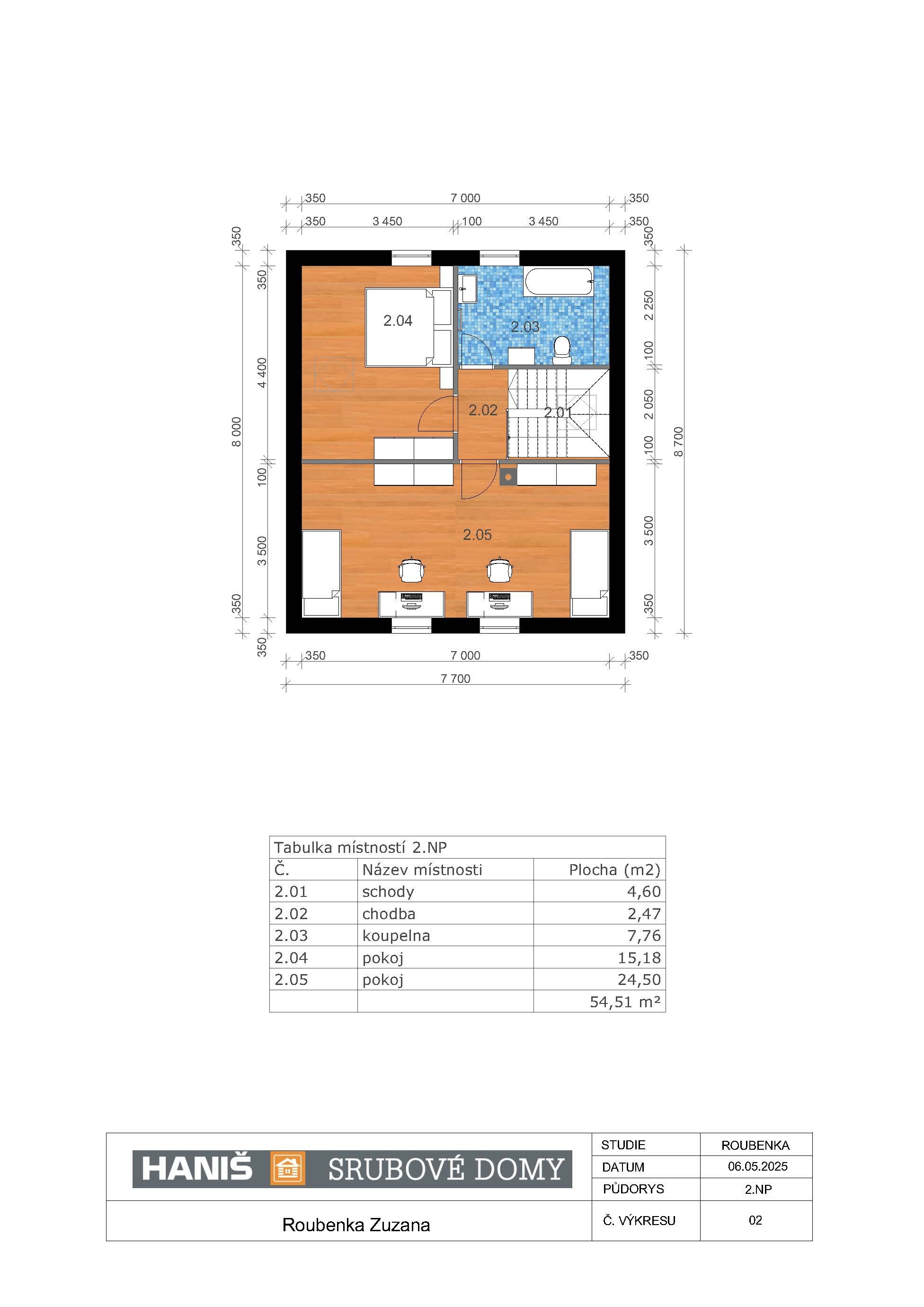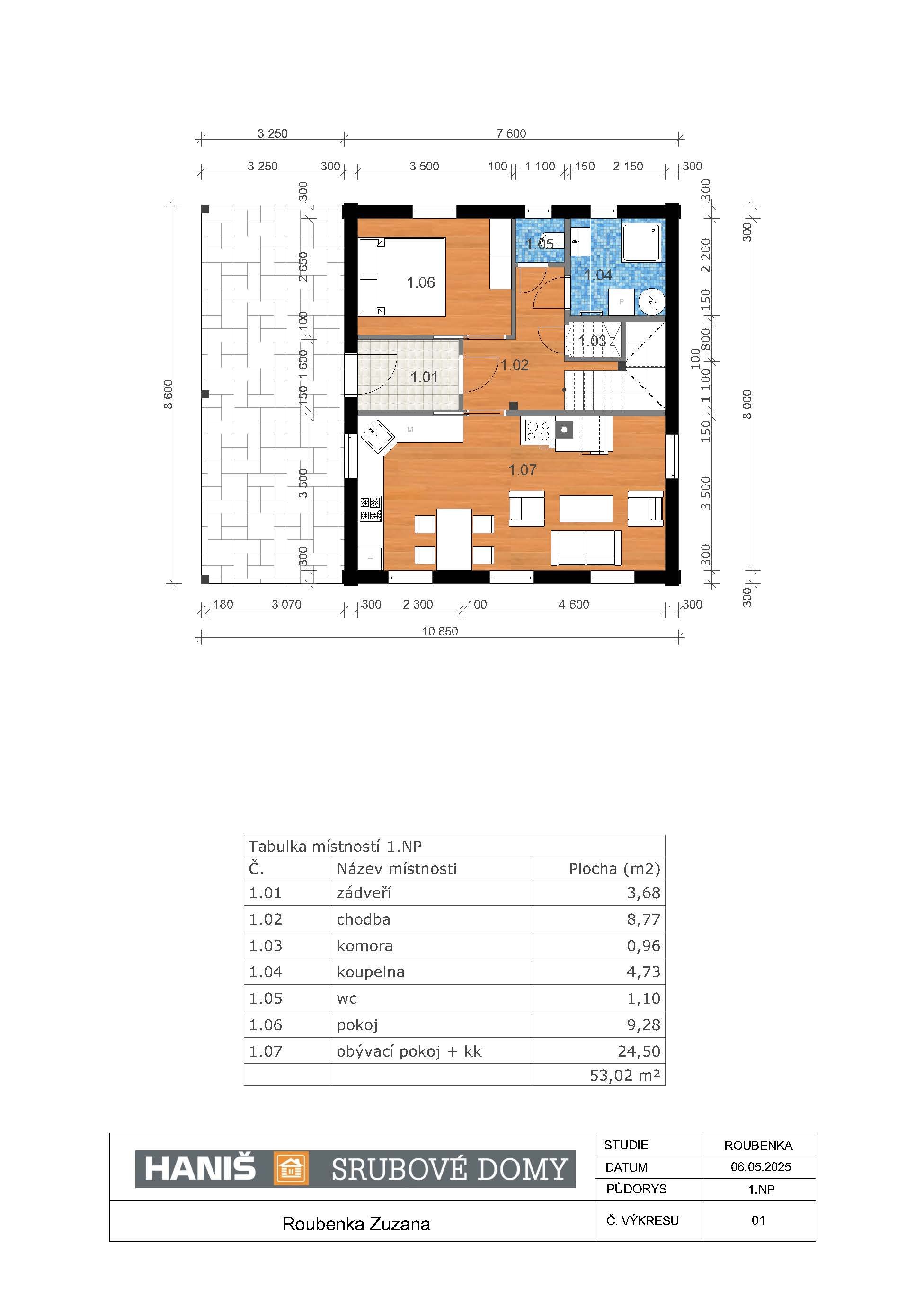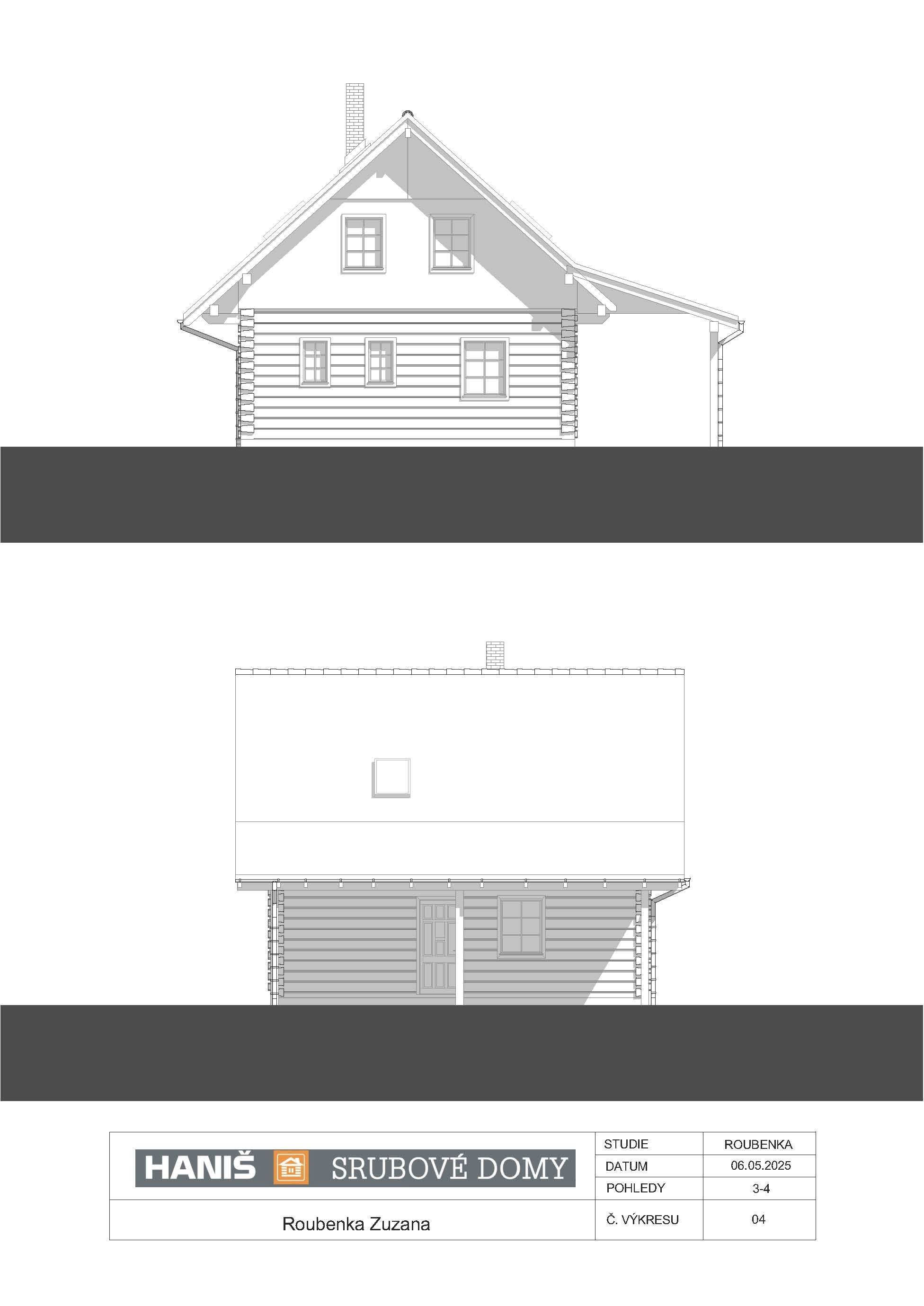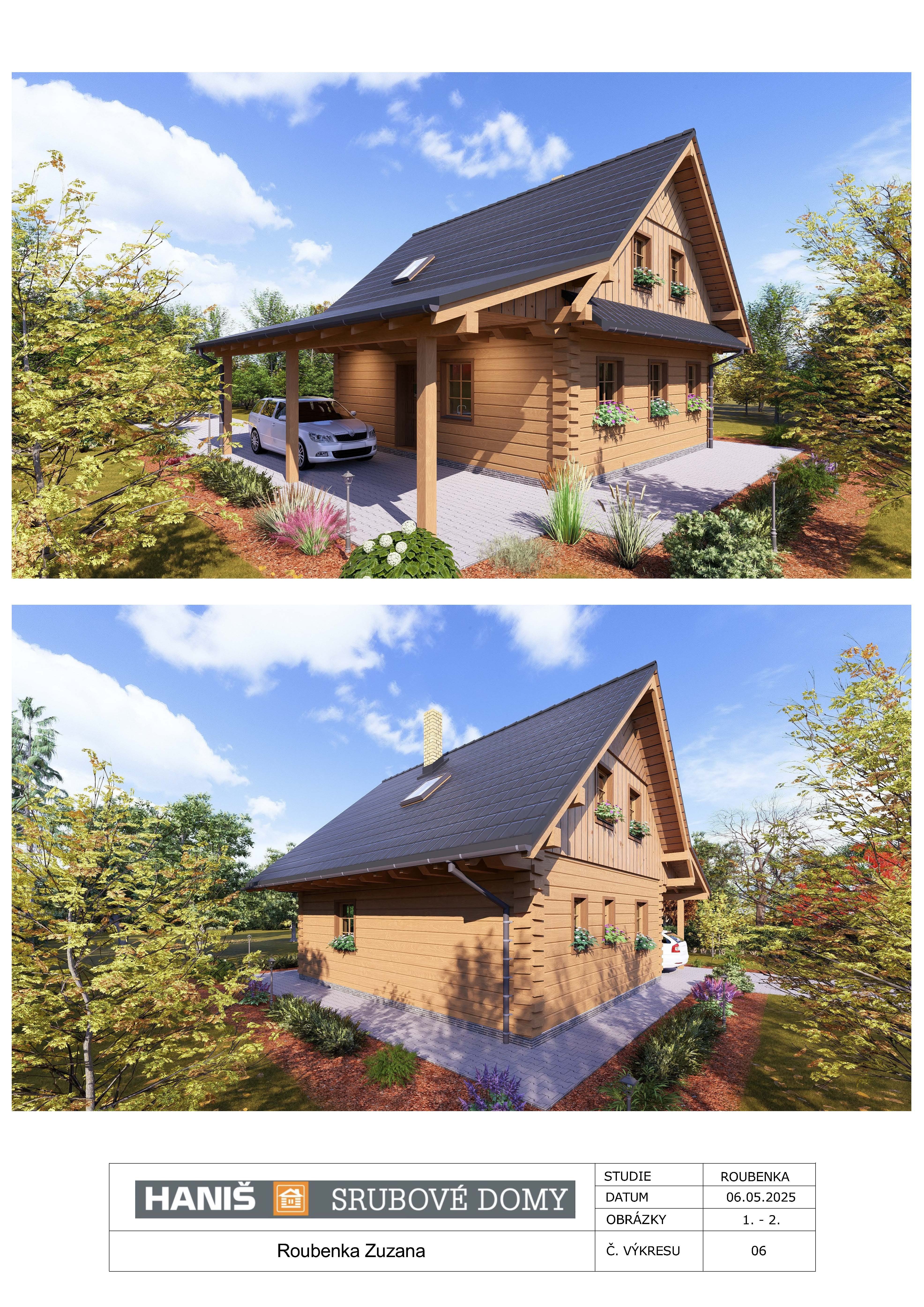 Roubenku Zuzana vyrábíme z hraněného masivu o průřezu 26/24 cm (možnost až 30/24cm) - splňuje technické parametry pro rodinné bydlení.