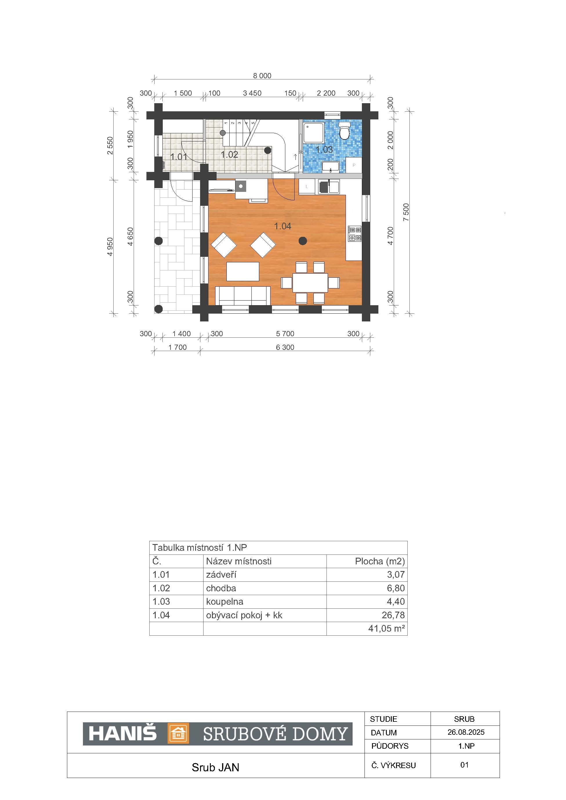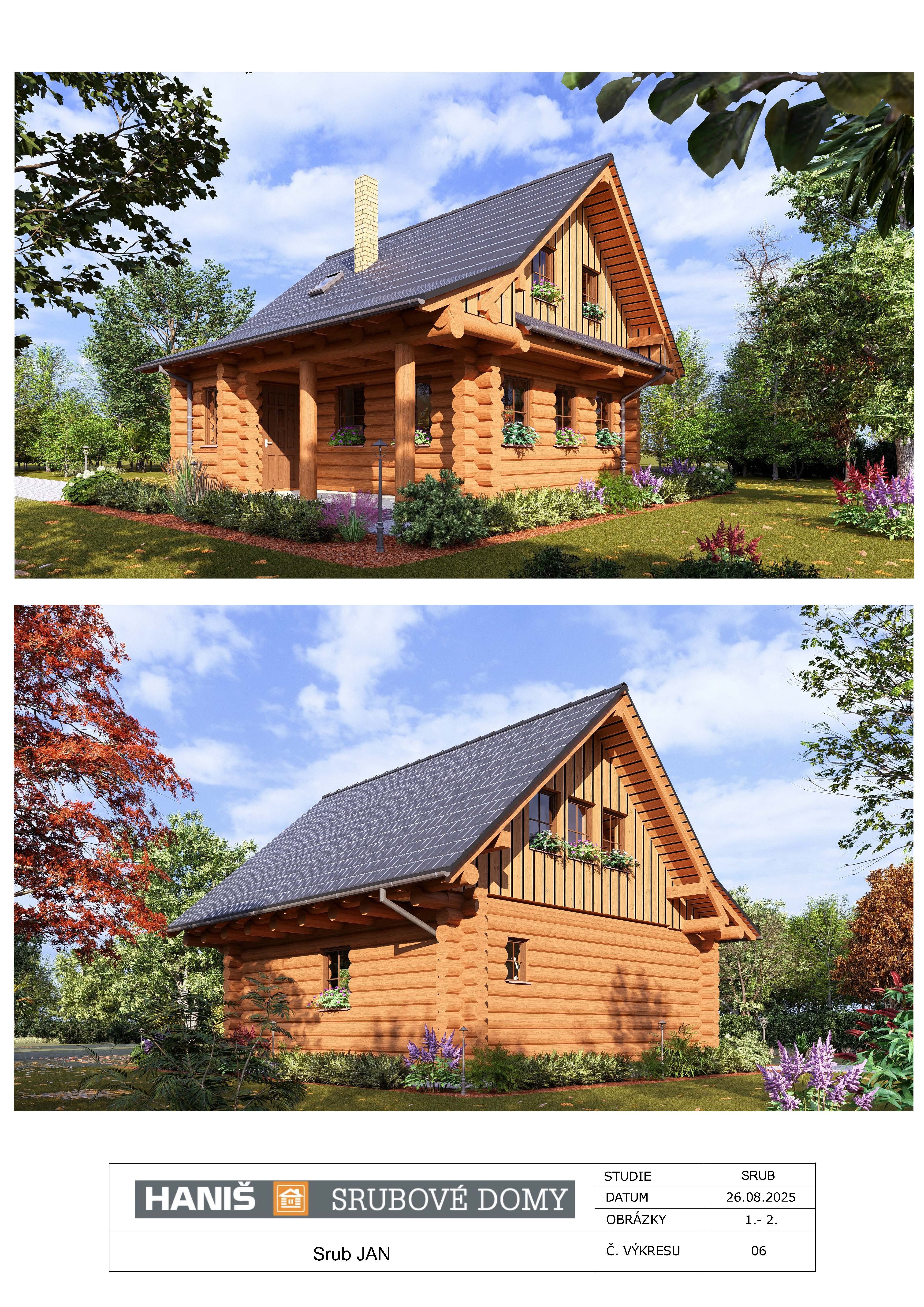 Dispozičně se srub Jan velice často upravuje v podkrovní části, která se podstatně zvětší o krytou část na terasou, jak uvidíte ve fotogalerii níže.
